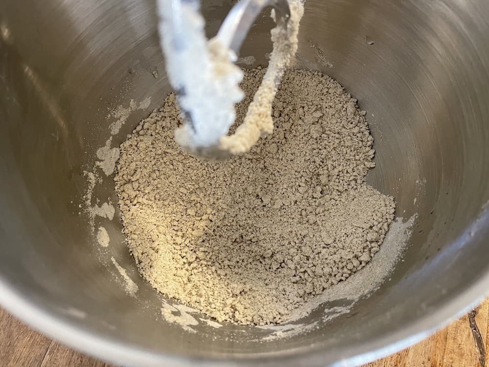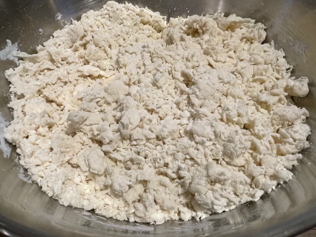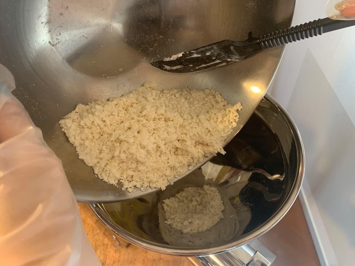 水分を均一に分散させて、ダマを切るように混ぜてください。ダマが小さくなれば水回しは完了です。